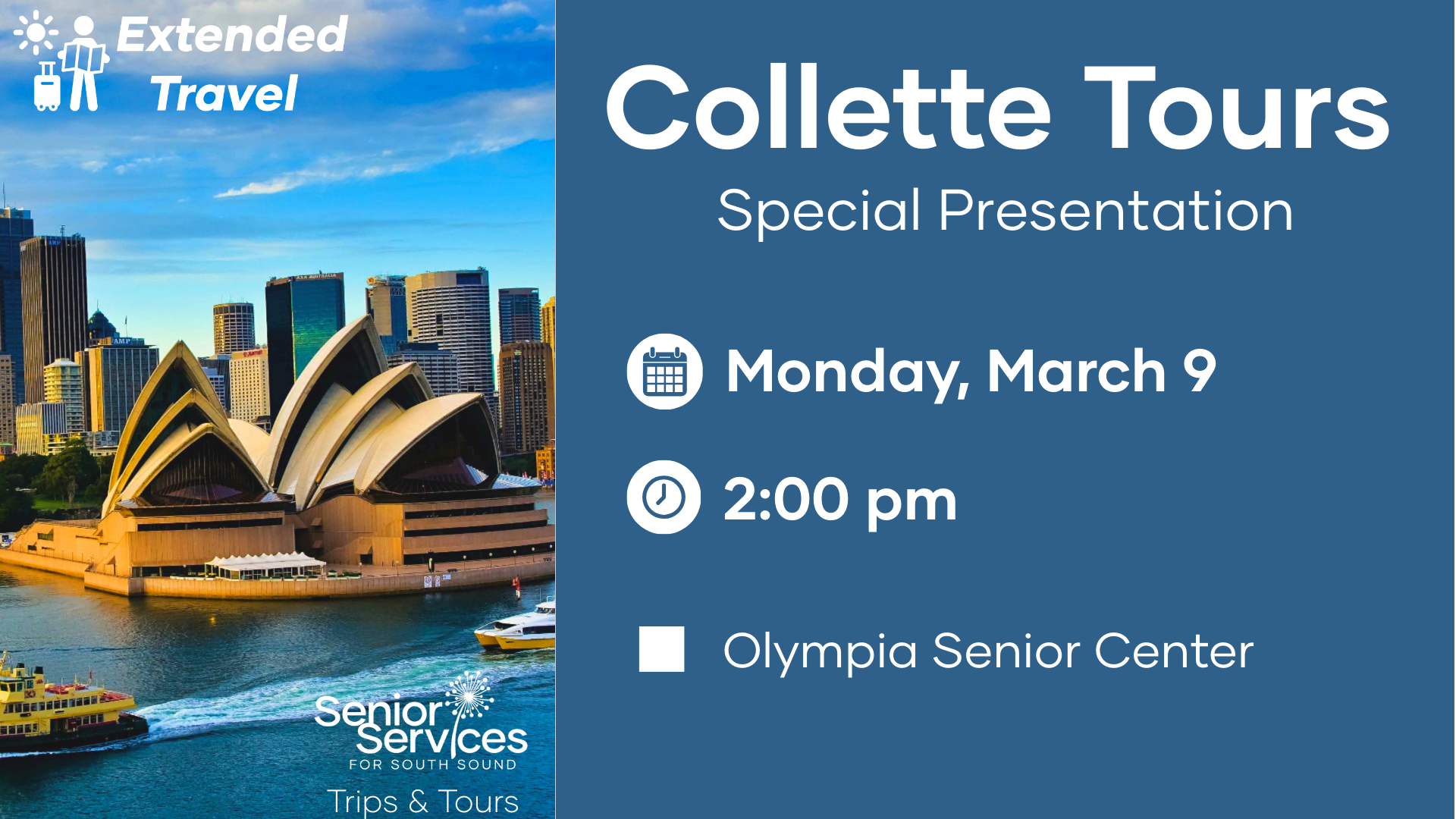 Join us for a free travel presentation with Collette Tours to learn about an unforgettable southern hemisphere adventure featuring the incredible sites of Australia and New Zealand.